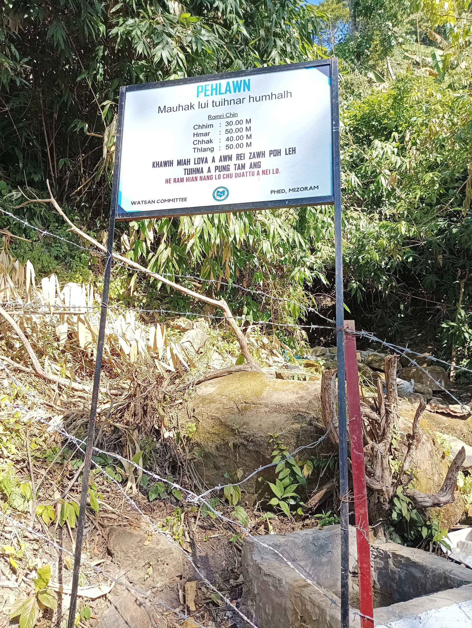 | Vautang bawk bul | Vautang bawk bul | 36 | 18.00 m | 2023-07-26 | 2023-07-29 | Intake Catchment Area humhalh nen fencing tih a ni a, tih belh leh hlek theih nise. Gate tha taka siam ani a, mihring leh ramsa luhkhan hung vek a ni. |